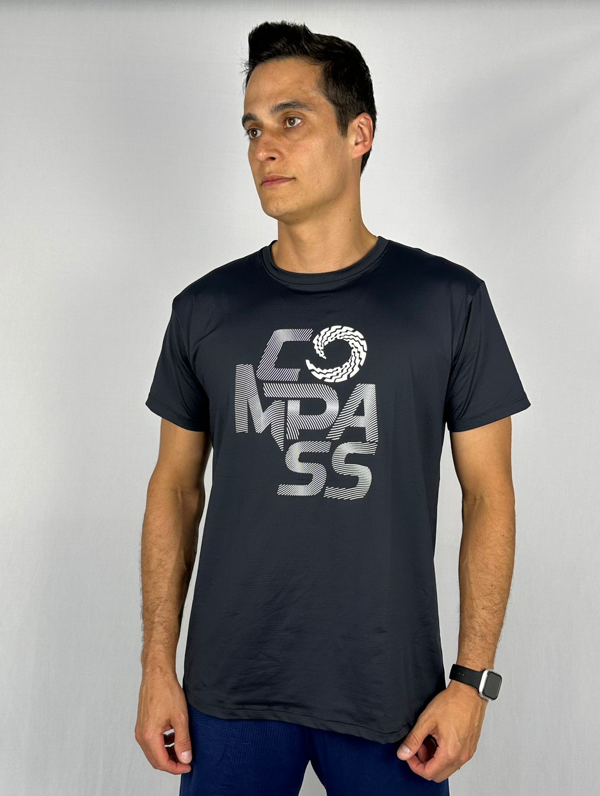 CAMISETA DRY MASC PRETA LOGO RISCADO