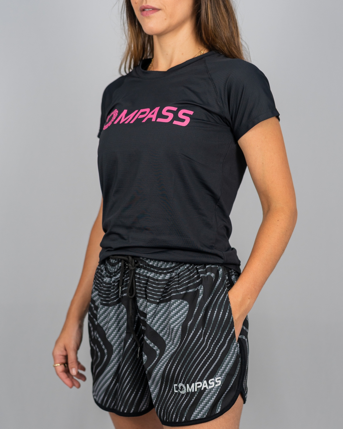 BABY LOOK DRY - PRETA LOGO ROSA
